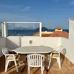 Algunas habitaciones del hostal incluyen una zona de comedor y un patio y vistas al mar.